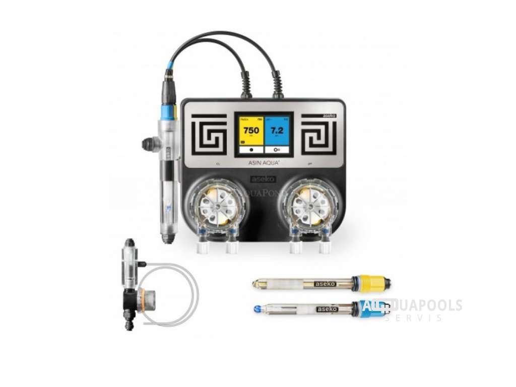 Asin Aqua Redox je automatika na dávkovanie bazénovej chémie pre súkromné bazény do objemu až 250 m3. Asin Aqua Redox pomocou sond automaticky meria a reguluje dávkované množstvo pH a chlóru v bazéne. Asin Aqua Redox tvorí kompaktný celok pozostávajúci z riadiacej jednotky, elektród na meranie pH a Redox a dvoch dávkovacích čerpadiel s výkonom 60 ml/min. Hodnoty pH a Redox sa zobrazujú na vstavanom dotykovom displeji.